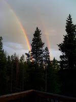 I am so happy to be in this cool mountain air. With my cute little fam. Forgetting all of that crap that’s waiting for us when we get back. Staring out at a HUGE double rainbow. So what if that makes us sound like the lyrics to a cheesy John Denver song. He was one talented mo-fo. TODAY’S THEME SONG: Party in the USA. Miley Cyrus. (Because it’s miss-miss’ favorite song and nothing makes me laugh harder than watching the hubby — and sometimes T-Rocks — dance to it.) So I put my hands up, they’re playin’ my song. The butterflies fly away.